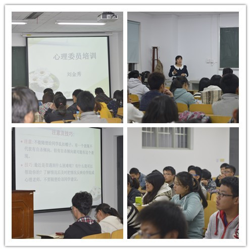 10月28日夜间,情绪安康教导指引重心刘金秀教员为电子工程教院情绪委员停止了博题道座,先容了心思安康的根基学问和怎样成为别名良好的心绪委员。经由过程原次道座,同砚们对于怎样判定年夜教死心思安康题目、怎样应付心绪同常等题目有了越发清楚的看法。