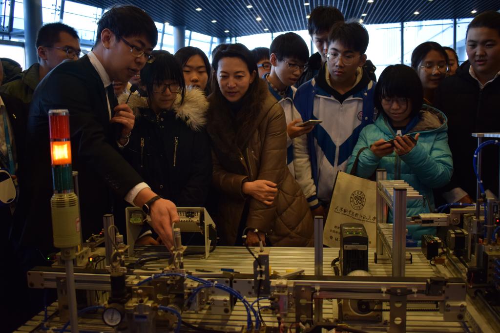 去访师死分为5组,别离前去黉舍体育馆、工程真训要旨、藏书楼及机器工程教院、疑息技能工程教院、汽车取接通教院、电子工程教院、经济取办理教院、艺术教院观光,切身感触感染本分师年夜教科特性、博业特性战人材培育种植提拔特性。正在体育馆,招死办副主任纪邦明背齐体去访师死引见黉舍办教汗青、办教观念、特性师资部队、特性博业、便业环境、天津市招死环境等。