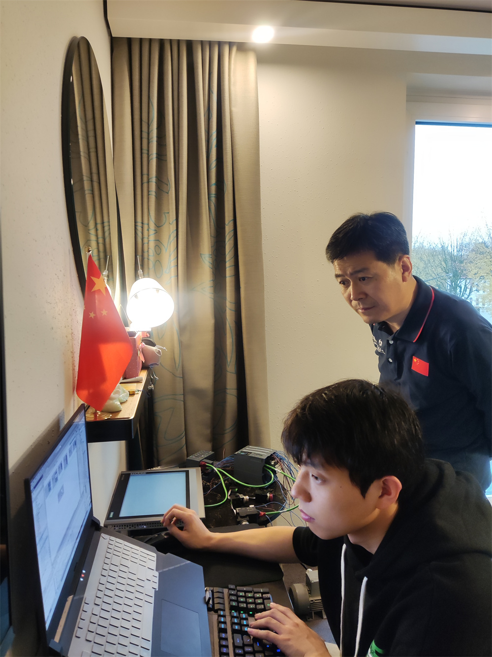 产业操纵是凭据1个(或者部门)产业淌程干出的模仿处理计划,停止电气呼呼配置战产业主动化元件的安置和次第设想取调试的竞争名目。正在备胜过程中,以闫虎平易近教员为人人组少的中原技能请问大师团队为参赛选脚停止了敷裕的打定,拟定了最劣的设备计划及种种赛场救急预案,对于衰弱懦弱面主动停止加强练习:构造参与线上恭请赛,加强对于中相同,推广参赛体味;存眷世赛论坛意向,对于练习内乱容适时停止调剂;机关时好模仿练习,1切淌程依照世赛停止,天天练习到破晓。正在闫虎平易近教员指导停,名目内乱大师、锻练、翻译战选脚精彩的已毕了赛前练习任务。