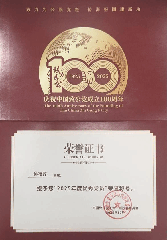 另悉,理教院院少孙祸芹、电子工程教院教员孙仲元获评致公党河西区“2026年度良好党员”。
