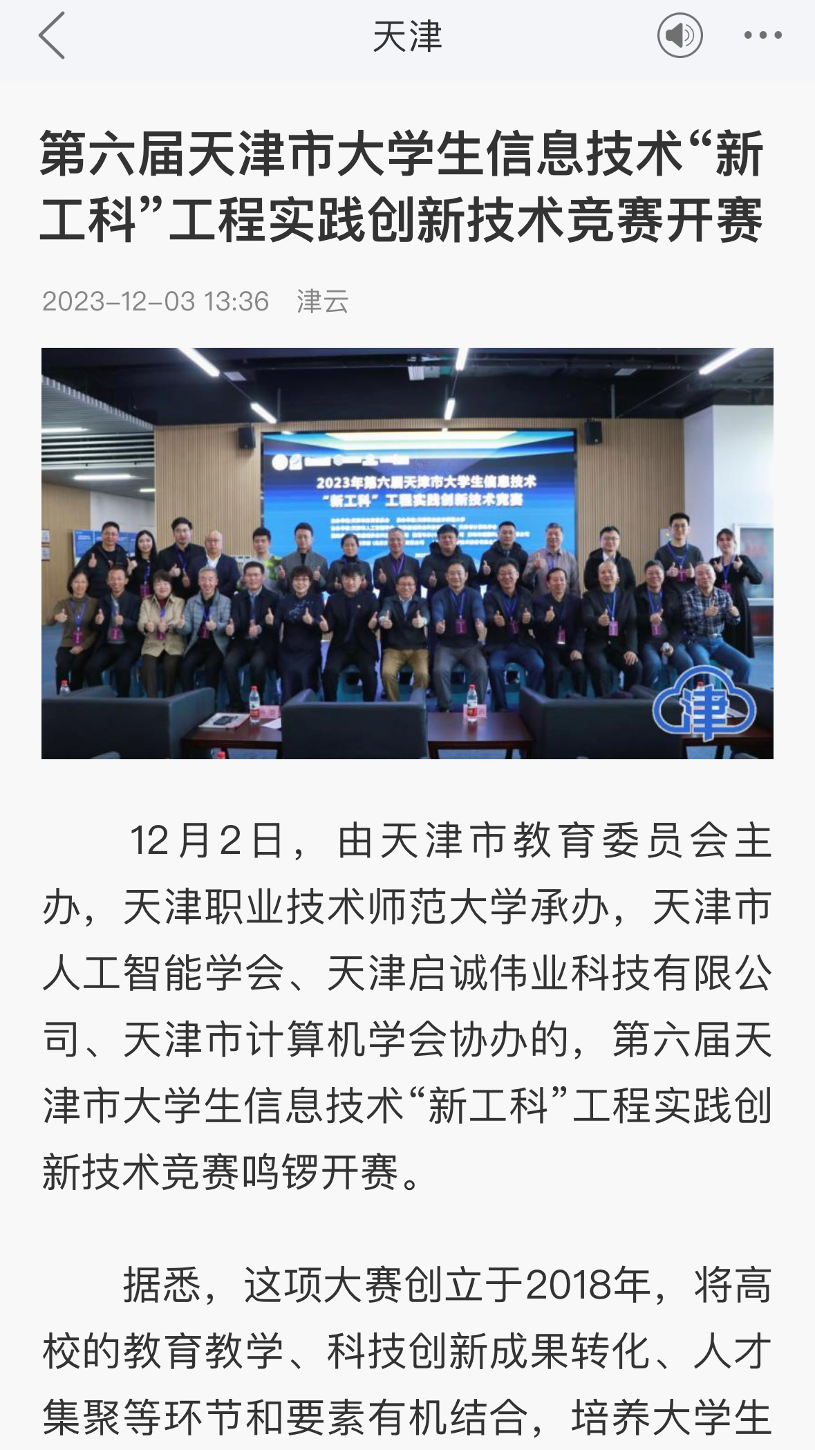今日津云以“第6届天津市年夜教死疑息技能“新工科