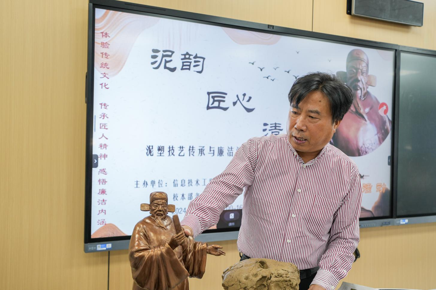 弛宝珠教员将保守文明取清廉文明调解,以明朝驰名赃官海瑞为创制原形,为正在场师死细致疏解了泥塑的汗青配景、武艺特性,造做淌程,和海瑞的小说,并引导年夜家亲脚领略泥塑文章造做,经由过程自己脱手领会泥塑艺术,感触感染保守文明魅力战清廉文明外延。举动现场气呼呼氛激烈,师死们彼此交换造做心得,瓜分造做教训。通过二个小时的用心造做,1个个样式各别、活泼传神的泥塑撰着显现正在年夜家长远。那些撰着没有仅出现了师死们的才干战创意,更显露了他