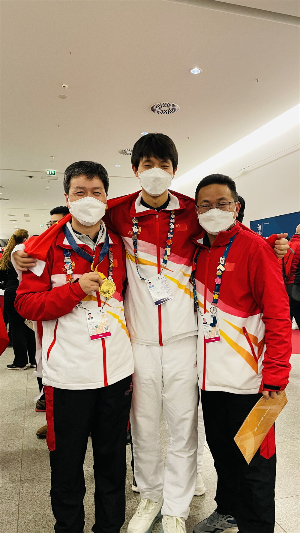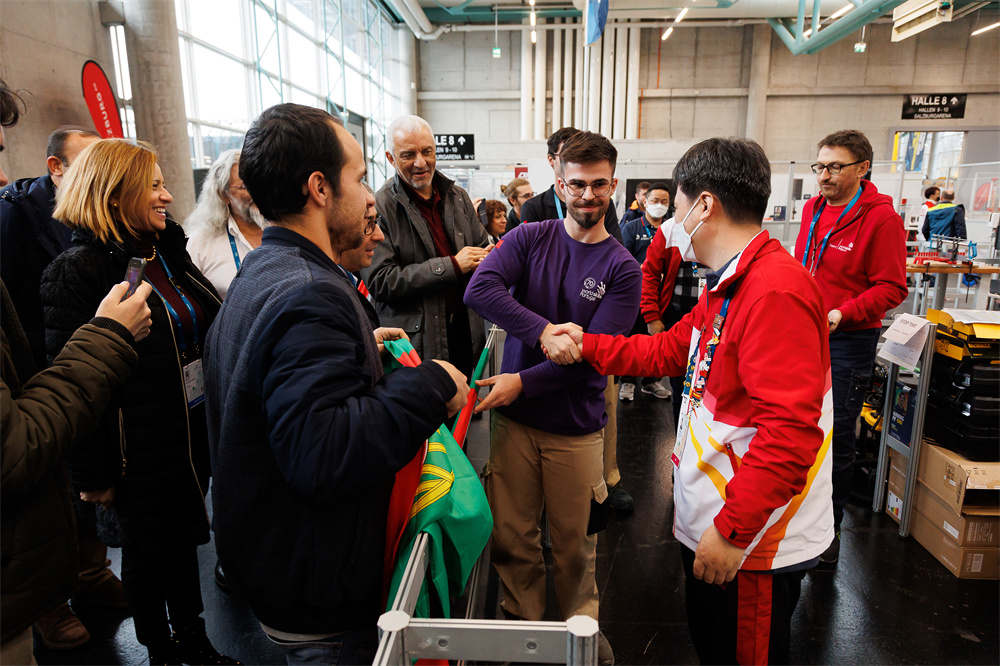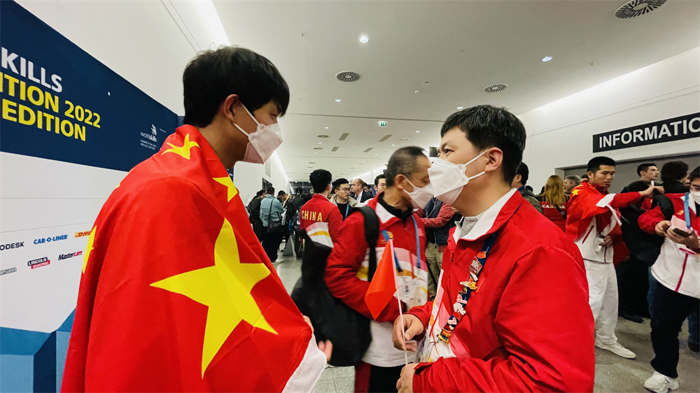 挥人人组组少闫虎平易近领导华夏选脚姜昊得到产业操纵名目金牌,那是产业操纵名目正在第44届全国技巧年夜赛得到金牌后,再次夺归金牌。