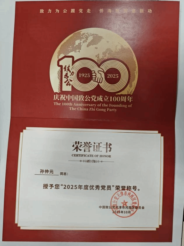 另悉,理教院院少孙祸芹、电子工程教院教员孙仲元获评致公党河西区“2026年度良好党员”。