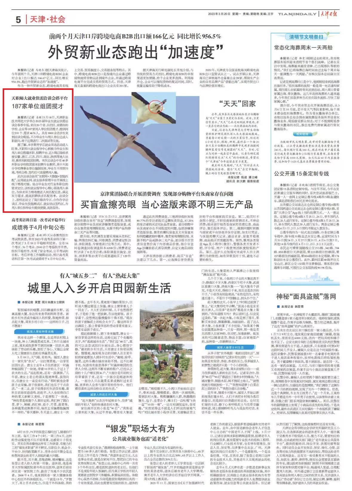 《天津日报》:天职师大就业供需洽谈会搭平台 187家单位组团揽才